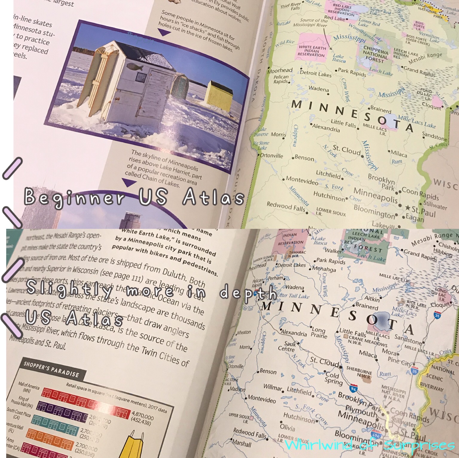 1) Beginner’s United States Atlas, Third Edition, (ages 7-10, 128 pages, paperback) - It is geared towards 7-10 year olds but for those of us that never learned much of US geography, this fully updated edition introduces us to cool facts and wonders of the various states. I love the various facts and showcased items about the unique things in each state. I didn't know what state birds, flowers, and flags were from what state. I loved how it's simple, straight forward, easy to understand and use.